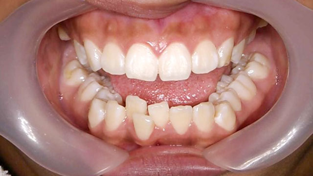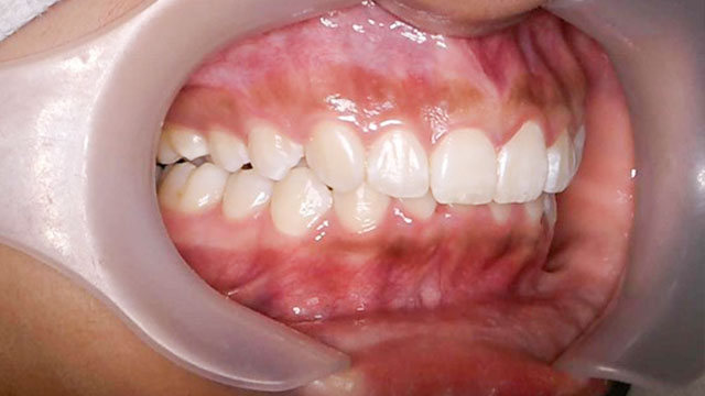 ワイヤー矯正であれば、小臼歯(4番目の歯)を4本抜歯して、矯正治療を行う可能性があり、その場合は、治療期間は約3年になります。