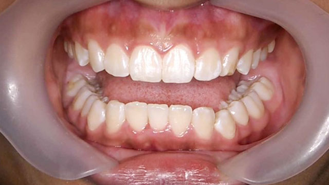 前歯はスッキリとしているのがわかります。奥歯の噛み合わせは変化しない治療方法ですので、治療前とほとんど変わりなく食事が可能です。